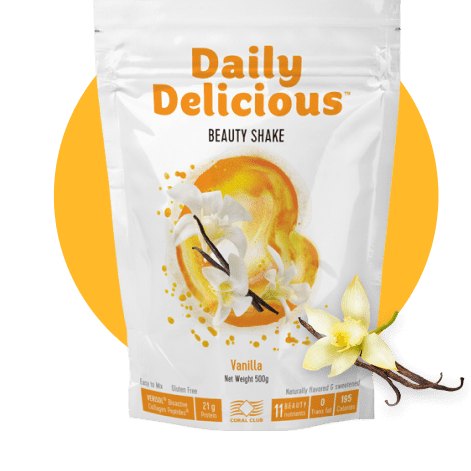 Im Daily Delicious Beauty Shake werden Kollagenpeptide eines führenden Herstellers von innovativen Formen von Kollagen aus Deutschland unter der Marke Verisol® verwendet.